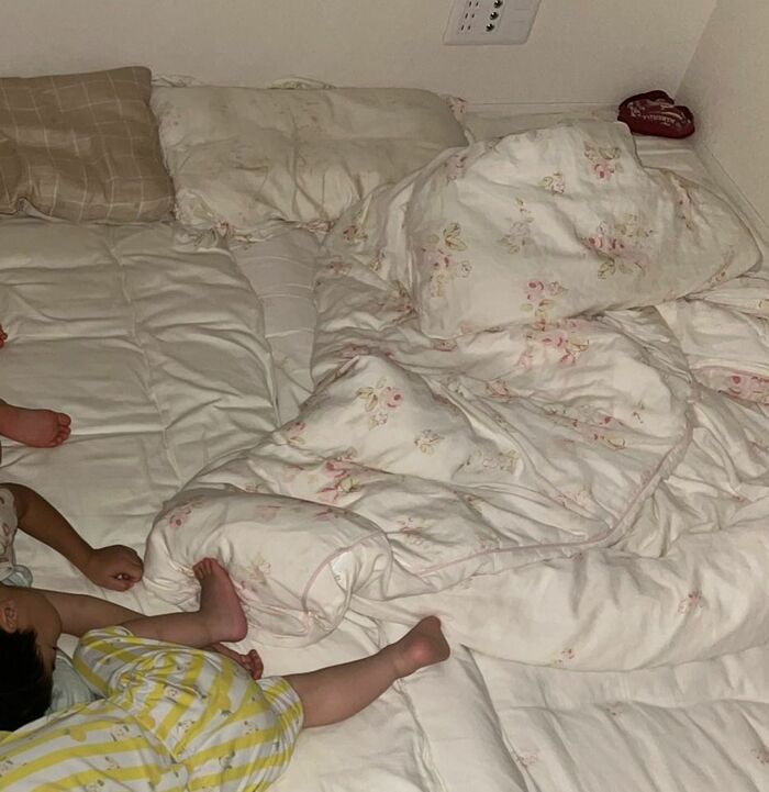 さらに、横にある掛け布団は大きく乱れています。
