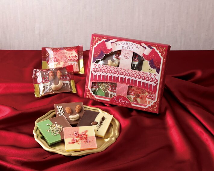 ナッツやフルーツなど、味わいも彩りも楽しめる「ラ・メゾン白金」のタブレットショコラを、宝塚大劇場オリジナルパッケージでお届けします。