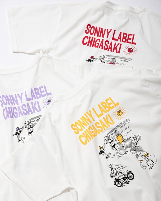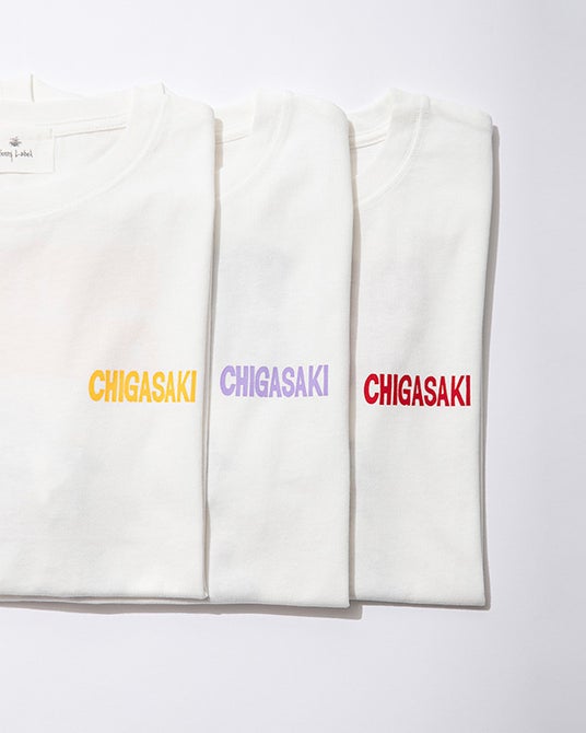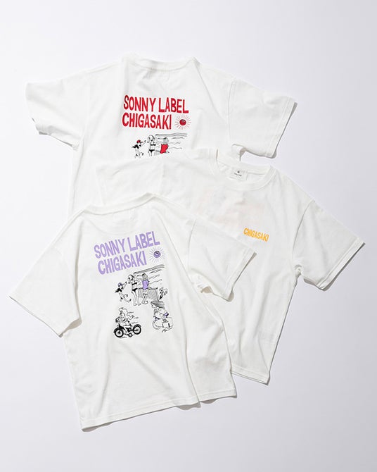 海や太陽、サーフボードを乗せた自転車など、茅ヶ崎らしい風景をRyu Ambeさんのフィルターを通して描き下ろしていただいたイラストをバックプリントに、胸元には“CHIGASAKI”の文字をワンポイントにあしらったスペシャルな仕様となっています。