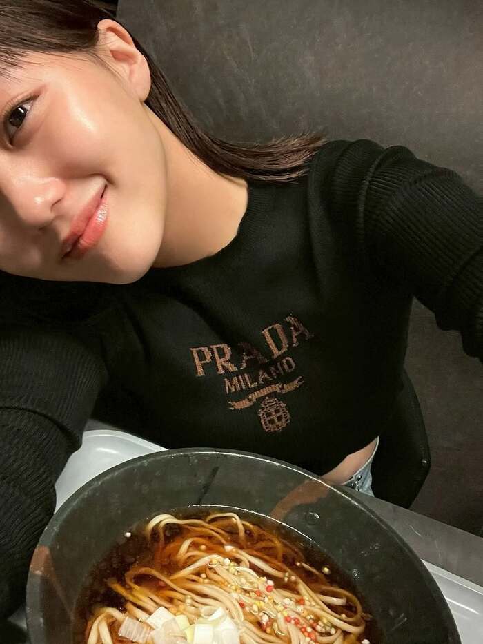 また、ラーメンを前にご機嫌に笑った自撮りショットや…