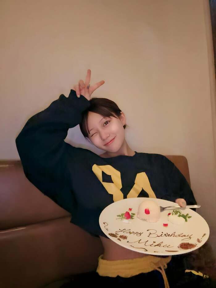 バースデープレートを手に持ち、頭の上でピースを決めたショットでは、引き締まったウエストがチラ見え。ウインクを決める田中さんの幸せそうな表情が印象的で、見ているこちらまで笑顔になってしまいます。