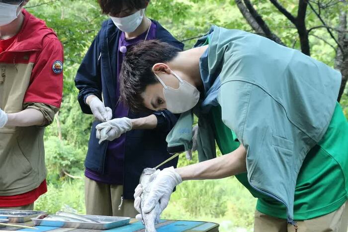 夕食会では、自分たちで作った“ニジマスの塩焼き”と“特製ピザ”をさっそく実食。「めっちゃ美味い!」と声が上がるなか、リョウガさんは川口さんが魚を食べる仕草を見て「かっけぇ…!」とぽつり。「形から入ろうと思って」と、川口さんの真似を一人でこっそりしはじめて…!?