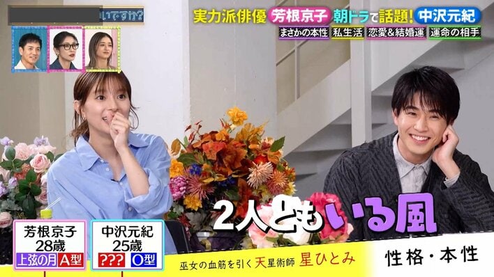 11月2日放送の『突然ですが占ってもいいですか?』は、芳根京子さんと中沢元紀さんが、星ひとみさんに占われました。