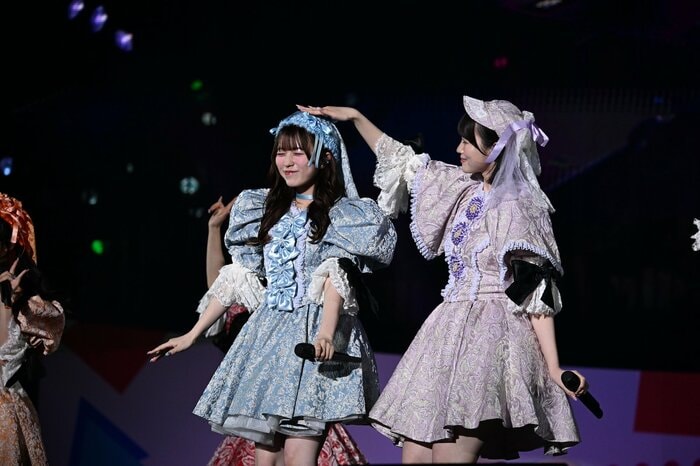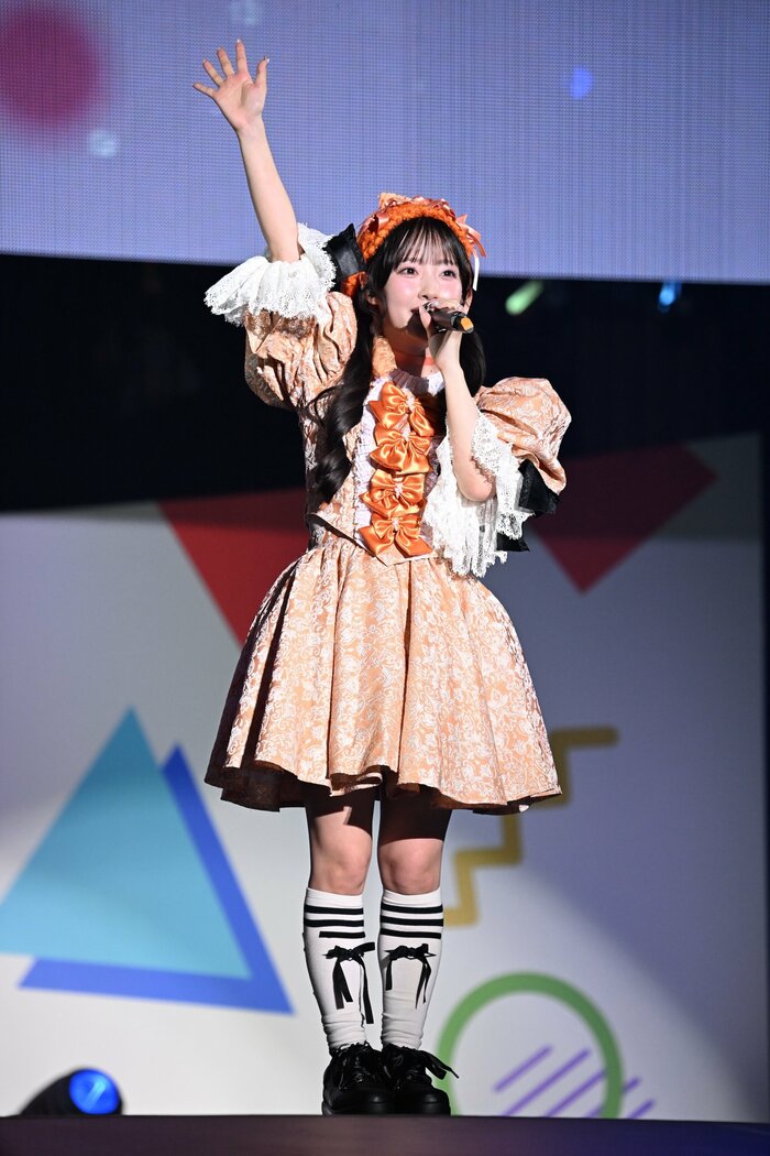 デビューから1年、あっという間に人気グループに駆け上がったことについて、佐野愛花さんが「全国各地でライブをさせていただけるようになったんですけれど、全国のいろいろな食べ物をお腹いっぱい食べられるようになりました!」と満面の笑みで明かすと、メンバーから「食いしん坊!」と総ツッコミを受けて会場を沸かせました。