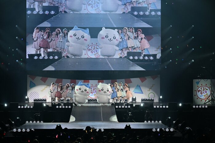 ここで、梅田みゆさんの「次は最後の曲になりますが、スペシャルゲストの登場です!」の呼び込みで、ちいかわとハチワレが登場。川本さんがちいかわの手を、古澤里紗さんがハチワレの手を引いて仲良くセンターステージに移動。
