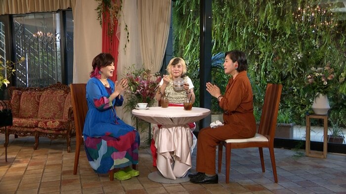 清水さんが、落ち着いた雰囲気の衣装の青木さんに「本番、これ?朝の番組だよ」と突っ込むと、野沢さんは「私は、これだよ。ディスコボール!」といって、身に着けているアイテムを主張。