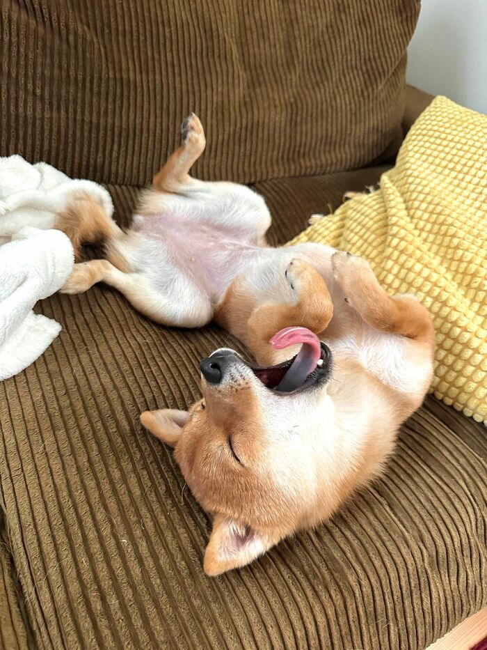 あおむけで大きなあくびをするタマちゃんも。リラックスした姿がなんとも愛らしいですね!