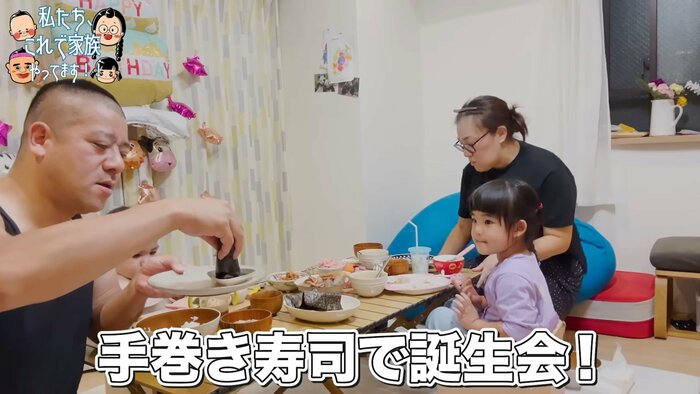 白鳥さんやチェリー吉武さんは「坊くん、誕生日おめでとう~!」と、お祝いの言葉をかけながら手巻き寿司を味わっていて、ほのぼのとした家族団らんの様子にほっこりです♪