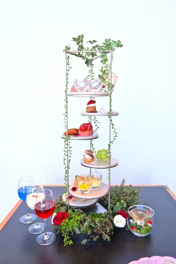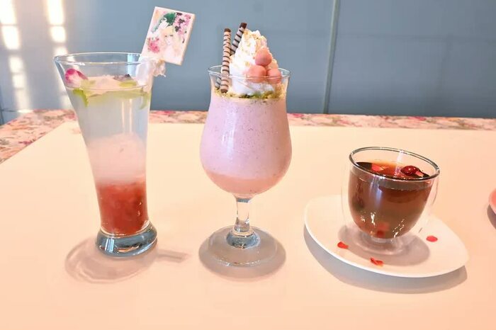 また、会場と同フロアにあるカフェ「THE SUN & THE MOON」では、ここでしか味わえないオリジナルメニューを堪能できます。「ベルばら」の世界を表現した美しいスイーツは、見て楽しい、食べて美味しい逸品ばかり。
