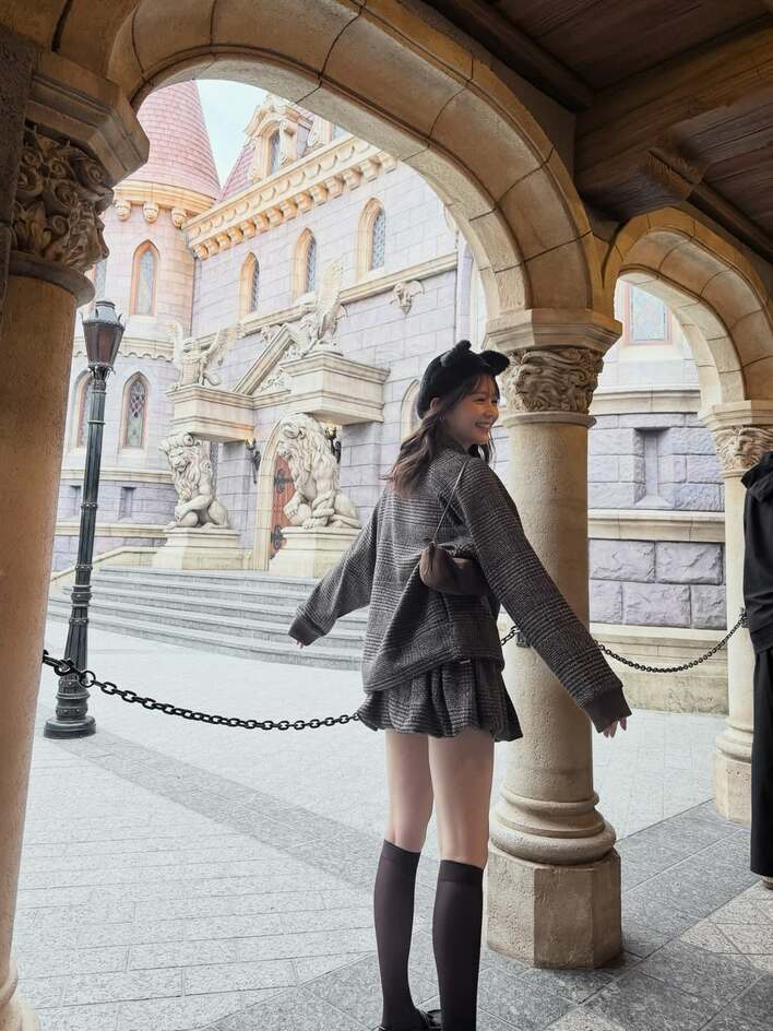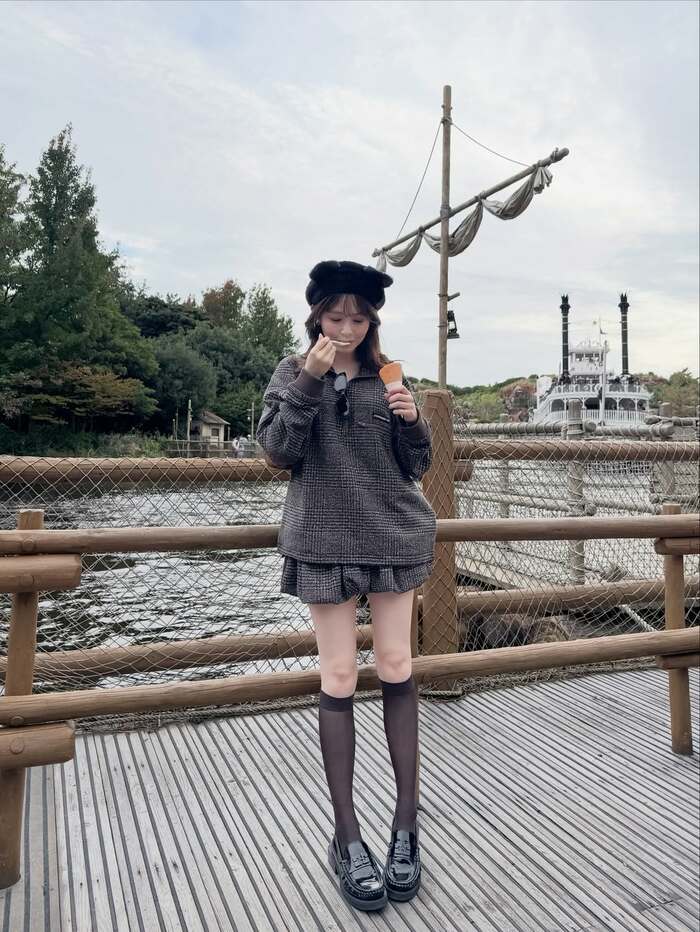 東京ディズニーランドを満喫するショットを公開し、抜群のスタイルを披露しています。