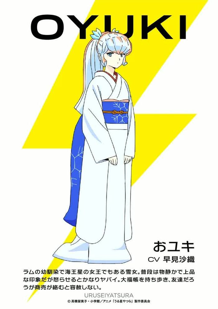 早見さんが演じるおユキは、ラムの幼なじみで海王星の女王でもある雪女。普段は物静かで上品な印象だが怒らせるとかなりヤバイ。大福帳を持ち歩き、友達だろうが商売が絡むと容赦しないというキャラクター。