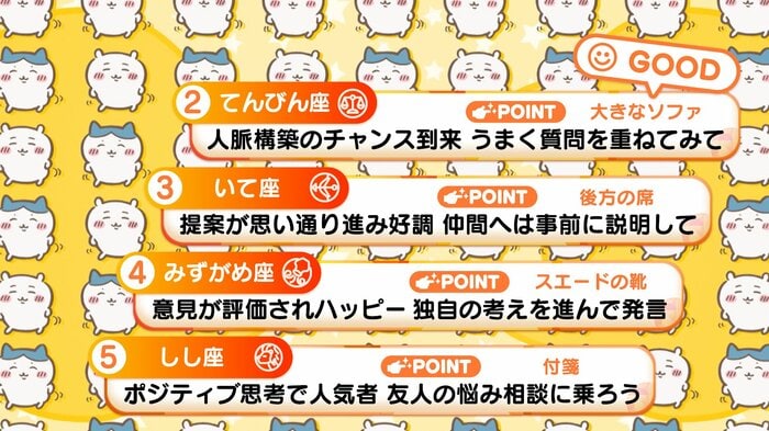 『めざましテレビ』で放送中の「ちいかわ占い」 テレビ放送がない日はお休みで、月~土:朝7時以降に更新予定です。