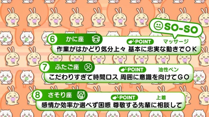 『めざましテレビ』で放送中の「ちいかわ占い」 テレビ放送がない日はお休みで、月~土:朝7時以降に更新予定です。