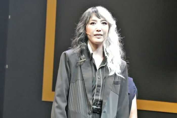 “世界のタケハナ”の異名をもつ演出家・竹花京太郎に扮する貴城けいさんは、「久しぶりの男役です。長年、宝塚でいろんな男性を演じてきましたが、今回のようなタイプは初めてで戸惑いも多い」と、元宝塚歌劇団・男役トップスターが抱える複雑な思いを苦笑いで明かしました。