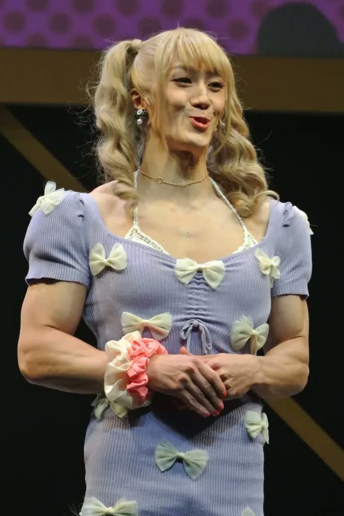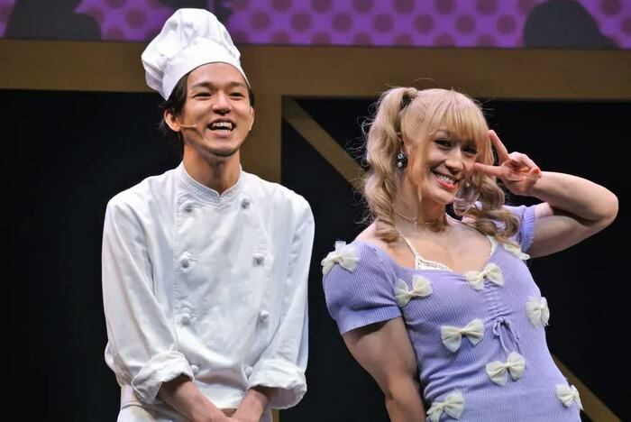 取材会に登場した福田さんは本番への意気込みを聞かれ、「超恥ずかしい~♡」と役柄になりきって頬を赤らめ、「女性の皆様に力強く寄りそい、心が熱くなる作品です。(劇場の)ステラボールで一緒に元気になりマッスル!」と意欲たっぷり。