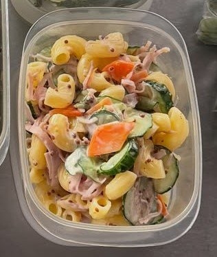 マカロニ、きゅうり、にんじん、ハムなど、多種類の具材が使われた「マカロニサラダ」も。
