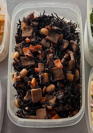 まず、一番大きな容器に詰められているのは「ひじき煮」。