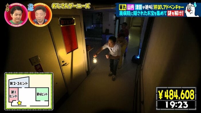 両チームは、廃病院の中に隠されたお宝ヒントを集めて謎解きに挑戦。
