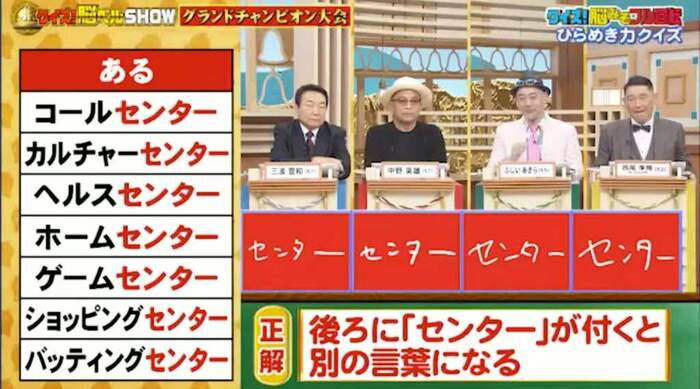 正解は「後ろに『センター』がつくと別の言葉になる」。またまた全員正解。