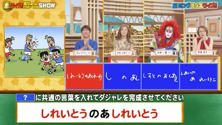 今回の解答者は、演歌歌手の北山たけしさん(48)、タレント・女優の武田久美子さん(54)、歌手の氏神一番さん(63)、女優の奈美悦子さん(71)の4名です。