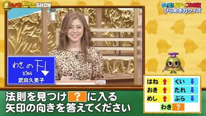 武田さんの答えは、わき「の下」だから「↓」。残念ながら不正解。