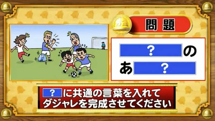 最初は「脳ミングアップクイズ」から、ダジャレ穴埋めの問題。「?」に共通する言葉を入れてダジャレを完成させてください。