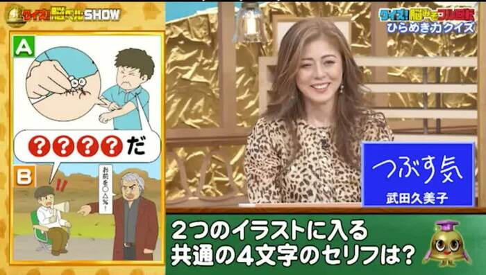 今回の解答者は、演歌歌手の北山たけしさん(48)、タレント・女優の武田久美子さん(54)、歌手の氏神一番さん(63)、女優の奈美悦子さん(71)の4名です。