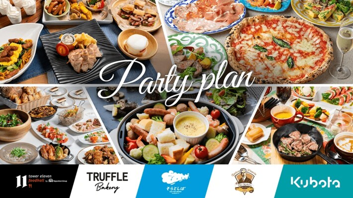 北海道ボールパークFビレッジ内のレストラン「tower eleven foodhall by Nipponham」「そらとしば by よなよなエール」「TruffleBAKERY BAKERY&RESTAURANT」「アンティーカ ピッツェリア ダ ミケーレ 北海道」「KUBOTA AGRI FRONT(CAFE)」では、団体様向けパーティープランの予約を開始いたします。