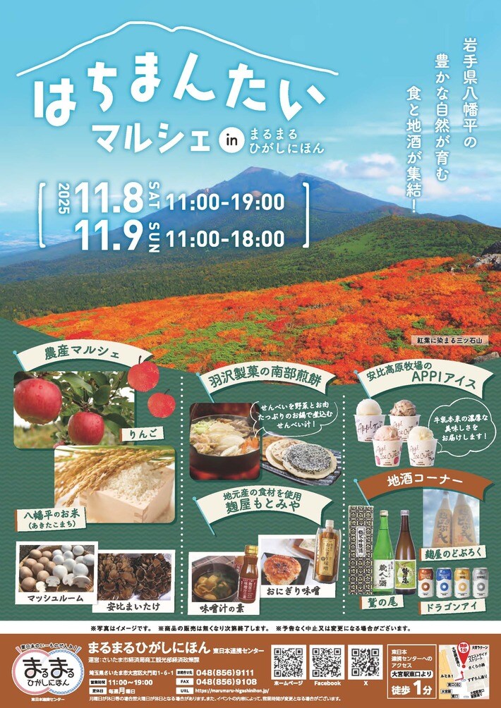 まるまるひがしにほんでは、11月8日(土)・9日(日)に「はちまんたいマルシェ」を開催します。