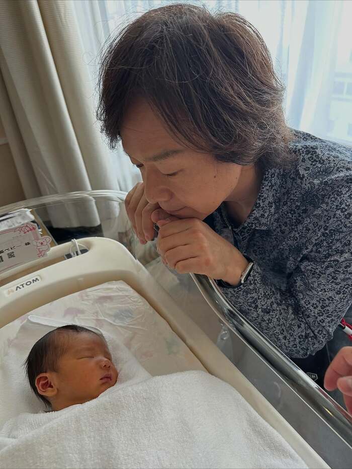 そして、小さなベッドですやすやと眠る赤ちゃんを、いとおしそうなまなざしで見つめる佐藤さんの姿も。佐藤さんは「日に日に孫の可愛さが増しています!」と、すでに孫にメロメロのようです。