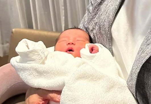 赤ちゃんは長男夫婦の元に生まれたそうで、小さく口を開け、顔の横で手をぎゅっと握り締めたポーズがとってもかわいらしく、見ているだけで癒やされますね♪