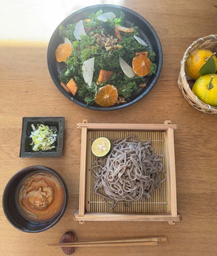 そんなビタミン豊富なサラダの隣には、そばも!