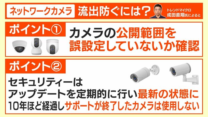 保育園児の映像であれば、映像が悪用されてしまう可能性はありますし、自宅内や玄関先もプライバシーの侵害になったり、闇バイト、強盗の対策のために防犯カメラを設置したという方は多くいらっしゃると思いますが、逆にそのカメラが強盗に入るために使われる可能性もあると。