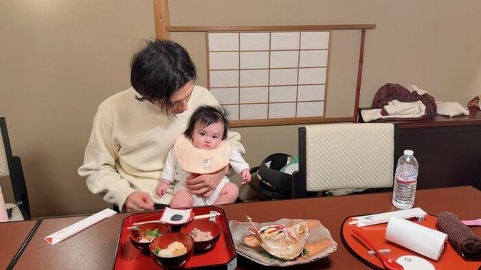 生後4ヵ月を迎えた次女のお食い初めの様子や、仲睦まじい親子3世代ショットを披露しました。