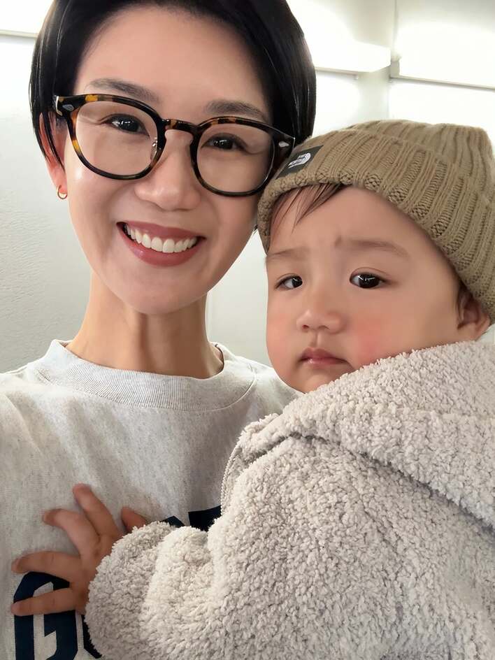 公開されたのは、栗原さんが陽太くんを抱きかかえた親子ショット。