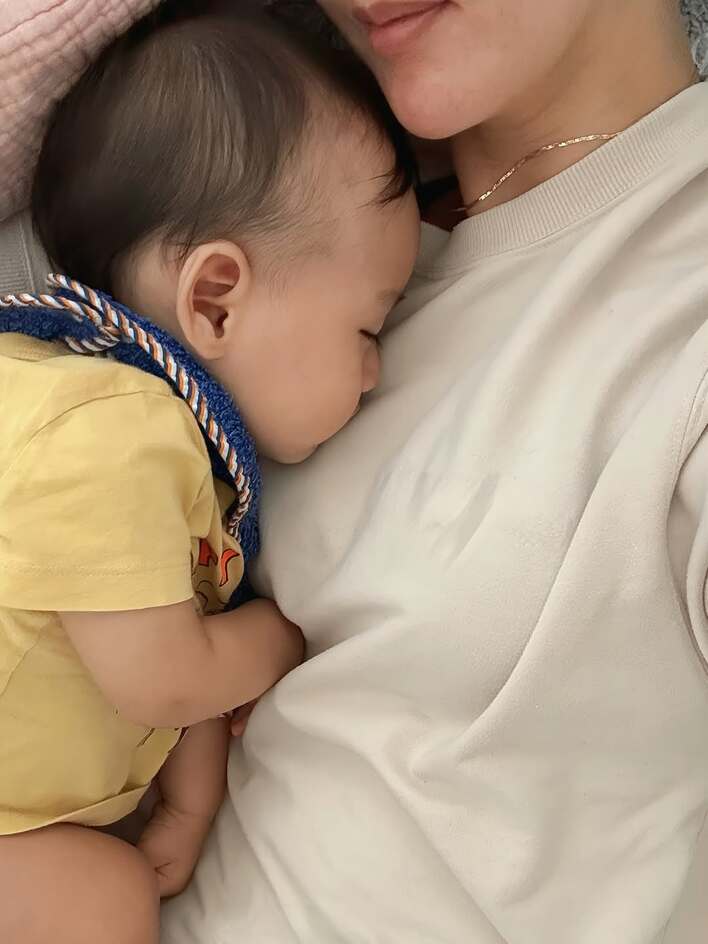 そして、ママの腕の中でスヤスヤ気持ち良さそうに眠る姿も。