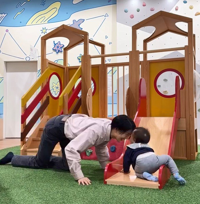 続いて、キッズスペースで陽太くんと過ごす動画も公開した栗原さん。