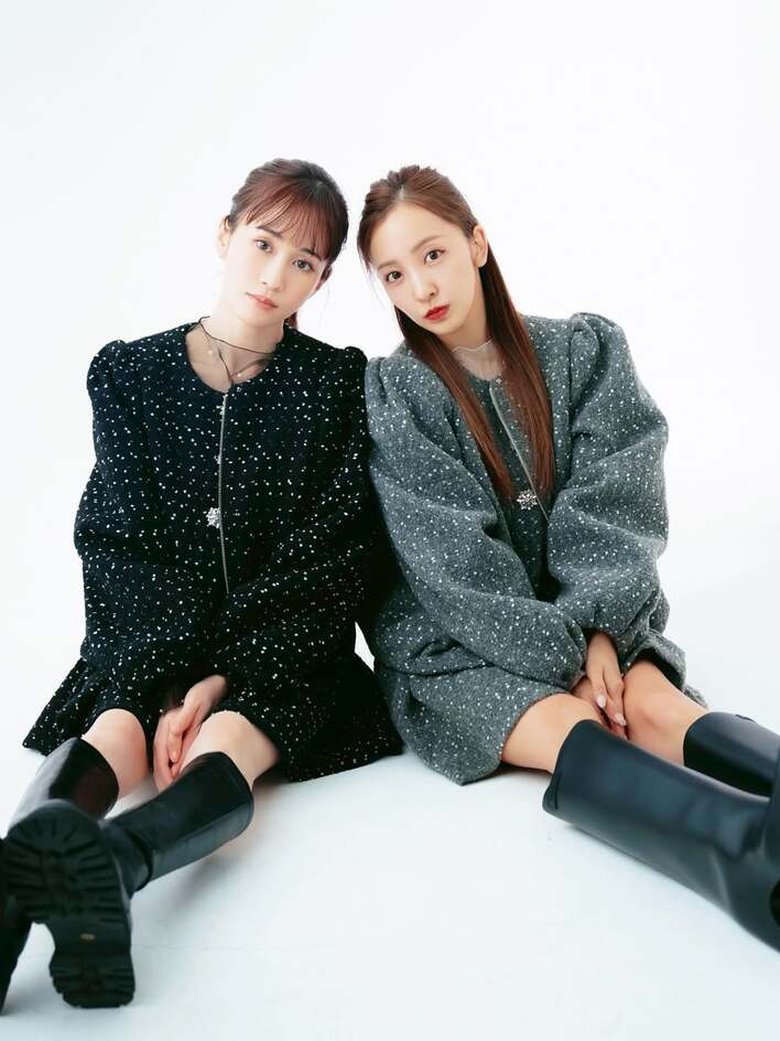 公開された写真には、板野さんが手がけるブランドの服をおそろいで着こなす前田さんと板野さんが、仲良く座って顔を寄せ合う姿が写っています。