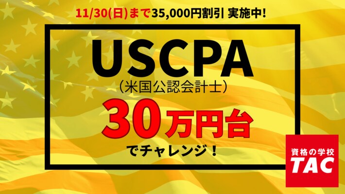 TAC株式会社(東京都千代田区、代表取締役:多田敏男)は、USCPA講座の受講料がお得になる「秋の特割キャンペーン第2弾」がスタート。11月30日(日)まで実施中です。