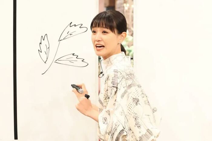過去の挑戦VTRを見た奈緒さんは「絵のほうが大変なのかと思ったら、しりとりの段階で苦戦している」とつぶやき、絵心を問われると、「美術部だったので好きです」と作品を披露。