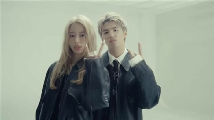 ブラックコーデでは、ロックンロールのポーズをする場面や…