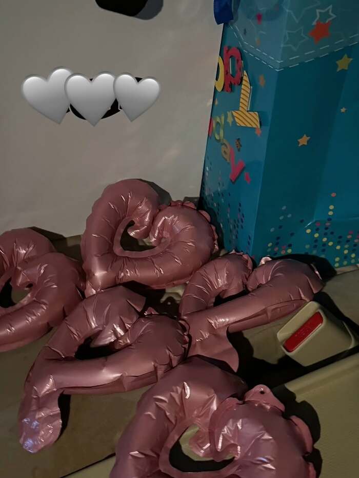 そして、ハート型のバルーンが並んだ空間を公開。賑やかな誕生日パーティーが行われた様子がうかがえます。