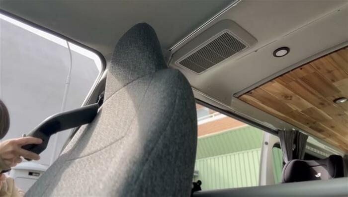 グレー色の座席部分も掃除機で汚れを吸い取っていったり…。