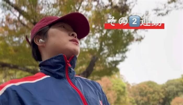 イモトさんはキャップをかぶり、軽くジョギングをします。