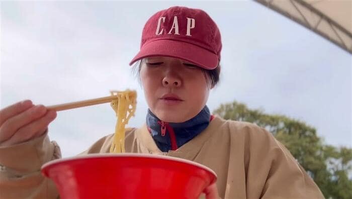 「運動の後の、しかもちょっと冷え込んできた時間帯がたまんないですね」と、イモトさんは豪快に麺をすすっていきます。