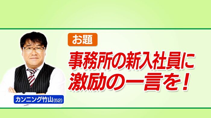 「事務所の新入社員に激励のひと言を」と言われた竹山さんは、「いいところ入ったと思うよ〜。一緒に楽しもうぜ!」とシンプルに答え、三木さんは「会議などで発言時間を制限すると聞き手も集中するし、話し手は本当に伝えなければいけないことは何なのか、考えるきっかけになる」と、その効果を語りました。