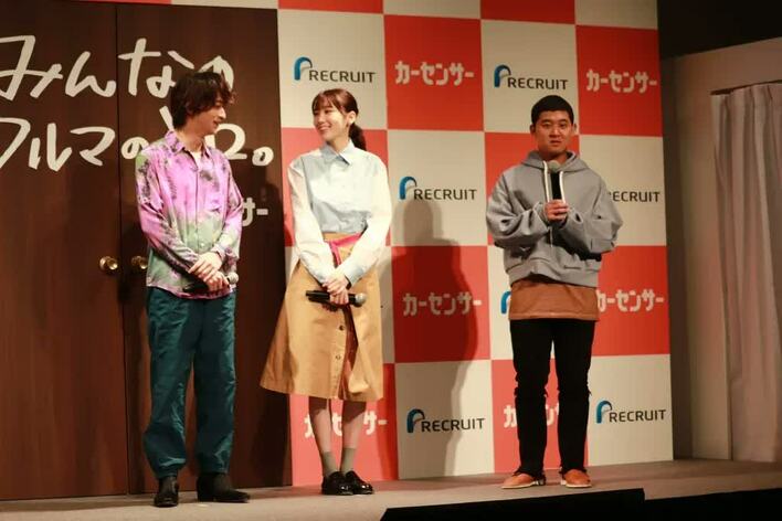 中古車情報メディア「カーセンサー」の新CM発表会が1月16日(木)に都内で行われ、出演する横浜流星、飯豊まりえ、後藤拓実(四千頭身)が出席した。