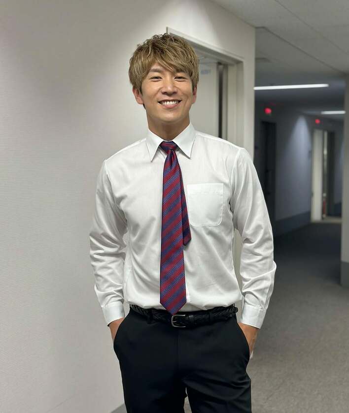 公開された写真には、前髪を下ろした真っ黒なヘアスタイルのコージさんの姿が。