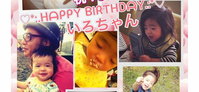 背景はピンクのハート柄、写真の中心には淡いピンク色で「祝16歳 HAPPY BIRTHDAY いろちゃん」と書かれています。