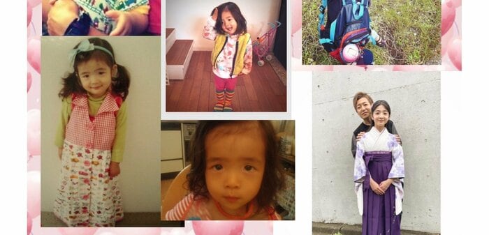 一番下には、三女が舌をペロッと出しておちゃめなポーズをしたり、かわいらしいワンピースを着てにっこりほほ笑んだりと、思い出がてんこ盛り!